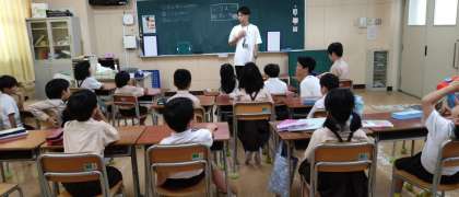 みんなに自己紹介をした後、名札を作りました。みんなの前で自己紹介するのは緊張していましたが、上手にお話しできていました。