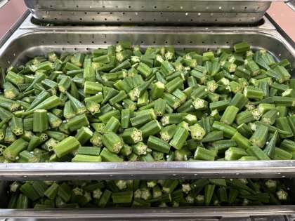 ※写真は、オクラを程よく蒸すところです!新鮮で、シャキシャキしてます!