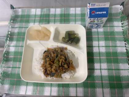 ※和風カレー丼  ※オクラの甘酢あえ  ※和なし(缶づめ)  ※牛乳