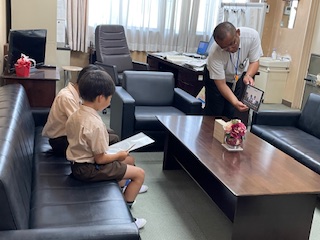 いつもは、朝礼台から全体に指示をするのですが、今回は校長室からカメラに向かって言うため、ドキドキしながらでしたが、校長先生にカメラを持っていただき、しっかりと話す事ができました。