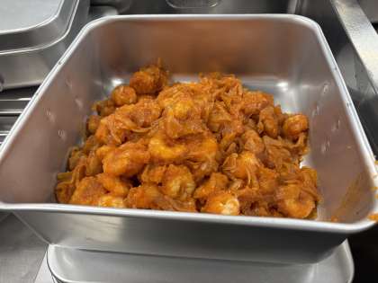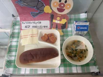 ※えびのチリソース ※中華スープ ※スライスチーズ ※黒糖パン ※牛乳