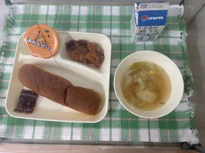 ※かぼちゃのミートグラタン ※スープ ※みかんゼリー ※コッペパン ※イチゴジャム ※牛乳