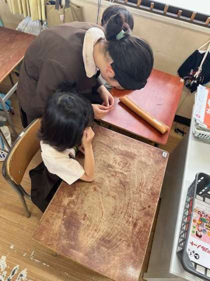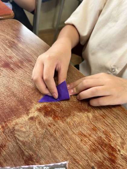 6年生が一年生に一生懸命に鶴の折り方を教えていました。他の学年も頑張って鶴を折る姿が見られました。