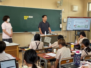大阪市教育委員会から3名の歯科衛生士さんと本校歯科校医野村先生が来られて指導していただきました。