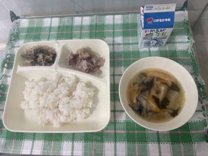 ※豚肉の生姜焼き ※五目汁 ※ツナと野菜の炒めもの ※ごはん ※牛乳