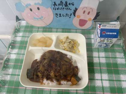※夏野菜のカレーライス ※サワーソテー ※洋なし(缶づめ) ※牛乳