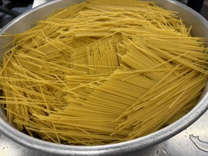 ※写真は、今日のスパゲッティをゆでるところです!(約17キログラムゆでます!)