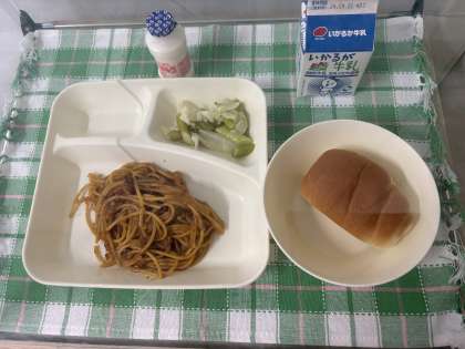 ※カレースパゲッティ  ※グリーンアスパラガスとキャベツのサラダ  ※発酵乳  ※ミニコッペパン  ※牛乳
