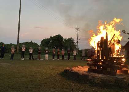 火の神より授かりし炎で、キャンプファイヤーの始まりです。