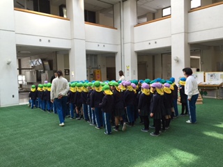 昼前には近隣の鶴見菊水幼稚園からかわいい園児たちが、学校見学に来ました。廊下からですが、1年生の授業の様子を熱心に見学しました。