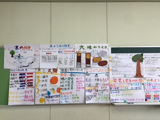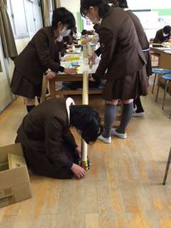 6年生は卒業まで学校へ来る日が10日を切り、学習のまとめをがんばっているところです。理科室では、これまで学習してきたことを掲示物にまとめたり、理科工作を作ったりしています。掲示物は自分たちのまとめになると同時に、次の学年の学習資料として使うので、真剣な様子で書いています。理科工作は「ピタゴラスイッチ」を作ろうということで、いろいろな材料を集めてきてみんなで楽しく取り組んでいます。