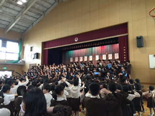 昨日の5時間目は、講堂で児童会主催の「卒業をお祝いする会」をしました。1〜5年生が拍手で迎える中を、6年生が少し照れくさそうに入場してきます。でもなかよし班のみんなから寄せ書きをもらうと嬉しそうに読んでいました。一緒にゲームをして楽しんだ後、6年生からは手作りの雑巾と歌のプレゼントがありました。6年生の「桜ノ雨」の合唱は在校生の心に響きました。在校生からはお祝いのメッセージと「にじいろ」の歌が贈られました。最後に校長先生から6年生へのはなむけの言葉と、この会を主催した5,4年生の児童会の人たちへのねぎらいの言葉がありました。鶴見南のよき伝統は、確かに引き継がれていっています。