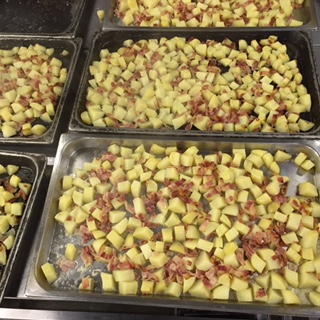 ジャーマンポテトは、じゃがいもとベーコンを塩こしょうで味付けし、焼き物機で蒸し焼きにした、焼き物献立でした。