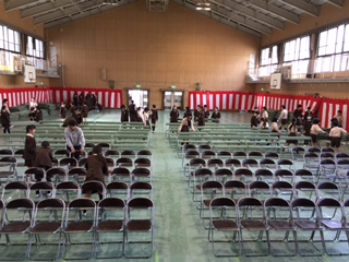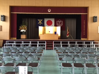 3月16日(水)いよいよ明日は卒業式。今日は1年生から4年生と6年生は給食終了後下校して、午後からは5年生と教職員で卒業式準備をしました。5年生は講堂のシートをきれいに拭いたり、椅子をきちんと並べたりしました。また、6年生の教室や廊下・階段などもきれいに掃除してくれました。本校ではこれがよい伝統としてずっと続いています。