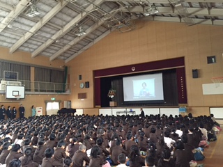 次に本年度の担任等の発表がありました。最後にみんなで校歌を歌って講堂での始業式を終わりました。