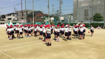 4月12日(火)今日も朝から良いお天気で、気温も少しずつ高くなってきました。運動場では2年生が元気に体育をしました。