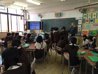 4月15日(金)5,6年生の外国語活動の時間が始まりました。この4月から新しいC-NETとして、Barry Park(バリー・パーク)先生が来られました。今日はその授業の第1回目、バリー先生の自己紹介をプレゼンを使った楽しいクイズ形式でしました。Barry先生は英語しか話しませんが、子どもたちは意味を考えながら楽しくクイズにチャレンジしていきました。