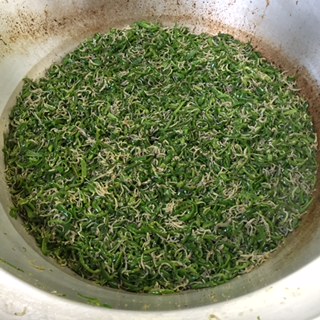 写真右は出来上がった、じゃこピーマンの様子です。