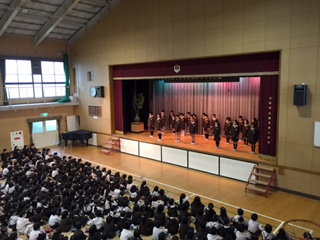 1年生には少し難しかったかもしれませんが、堂々とした先輩の姿を目の当たりにして静かに聞いていました。「がんばることがカッコいい、それが鶴南っ子」の原点がここにあります。