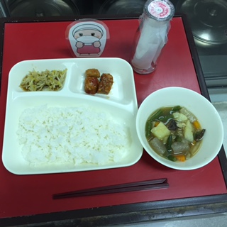 明日の献立は「カレースープスパゲッティ・かぼちゃのバター焼き・甘夏かん・パン・牛乳」です。明日の献立も楽しみにしていてくださいね。