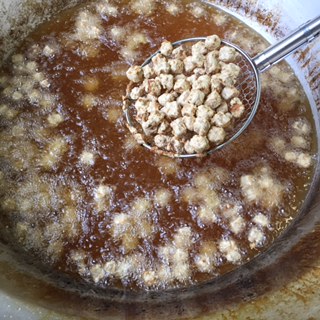 まぐろのオーロラ煮は、まぐろを料理酒、しょうがで下味をつけ、でんぷんをまぶして揚げ、ケチャップ、砂糖、赤みそで作った、手作りのオーロラソースをからめた、揚げ物献立でした。