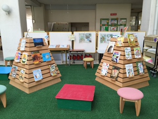 グリーンマットの図書コーナーには新しく入った本がずらっと並んでいて、子どもたちはさっそく手に取って読んでいました。また学校図書館には今年も図書館司書が入ることになりました。今日は1年生に「がっこうとしょかんのつかいかた」を紙芝居で紹介しました。1年生の子どもたちはしっかりお話を聞いた後、自分の読みたい本を選んで楽しく読んでいました。