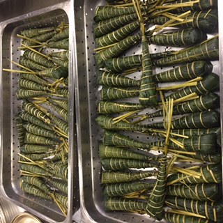 写真右は、蒸しあがったばかりのちまきの様子です。