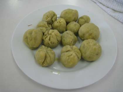 初めにエプロンを着て手指をよく洗い、グループで手分けしてサツマイモを洗ったり、包丁で切ったり、ゆがいたり、すりつぶしたり、焼いたりしていきました。