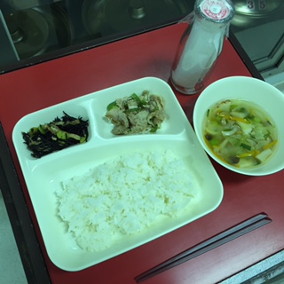 五目汁は、にんじん、たまねぎ、キャベツ、かまぼこ、しめじ等が入った具沢山の汁物献立でした。