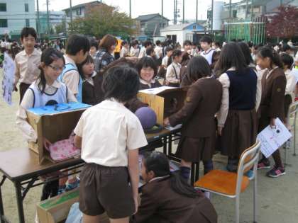 当日は児童会代表の「はじめのことば」に続いて、1〜6年の「たてわり班」で前半・後半に分けて24のお店を回りました。初めて参加する1年生は「たのしかった」「おもしろかった」の声が多く、初めて店を出す3年生も「大変だったけど、みんなが喜んでくれて嬉しかった」と言っていました。