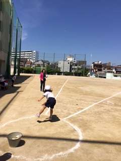 5月18日(水)今週は本校の「新体力テストウィーク」になっています。好天に恵まれて昨日は3,4年、今日は1,6年、明日は2,5年が、50m走やソフトボール投げ等にチャレンジしています。1年生は初めてなので、ボールを投げた経験があまりない人もいましたが、6年生ともなると50m近く投げる人もいました。