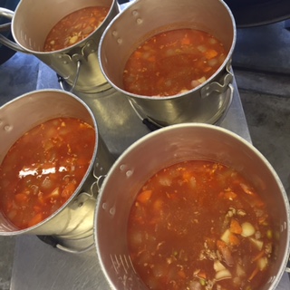 写真右は、ケチャップ煮の配缶の様子です。
