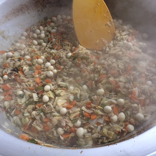八宝菜は、豚肉、にんじん、たまねぎ、キャベツ、たけのこ、ピーマン、しいたけ、うずら卵の8つの材料が入った中華料理の献立でした。「八宝」とは「たくさん」という意味です。