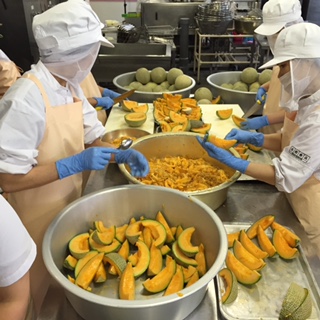 クインシーメロンは熊本県産の物が出ました。一つずつ種を取り、食べやすいよう切り込みが入っていました。