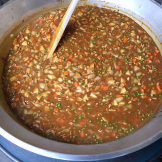 チキンカレーライスは、鶏肉、たまねぎ、にんじん、じゃがいも等が入ったカレーで、児童に人気の献立でした。また、本日のチキンカレーライスには、ラッキーにんじんが入っていました。