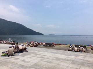 6月15日(水)良いお天気に恵まれて、6年生は朝7時過ぎに学校を出発しました。途中、琵琶湖博物館と水生植物園を見学して、お昼過ぎに全員元気に宿舎のマキノパークホテルに着きました。みんなお腹がペコペコだったので琵琶湖を眺めながらおいしくお弁当を食べました。