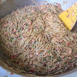 写真右は、シーフードスパゲッティを仕上げているところです。
