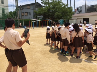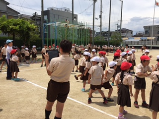 7月5日(火)今日も朝から34度と暑い一日になっています。教室は空調で学習しやすい環境にしていますが、それでも子どもたちは休み時間になると元気に運動場へ飛び出していきます。この時期は特に帽子をかぶること、遊びが終わって教室へ帰るときには手洗い・うがい・汗の始末を忘れずにして、水分補給もするように声をかけています。