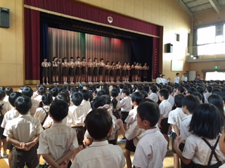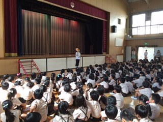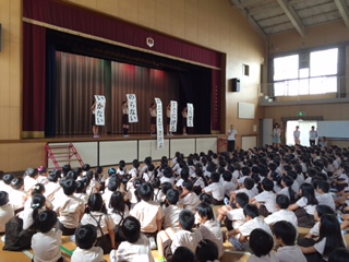 7月20日(水)いよいよ1学期の最終日になりました。1時間目は講堂で全学年集まっての終業式を行いました。校長先生からは「長い夏休み、計画を立てることも大切ですが、何か自分でやることを決めてそれに向かってがんばりましょう。」というお話がありました。
