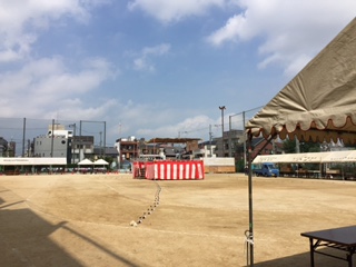 7月28日(木)今日も朝から真夏の日差しが照りつけています。昨日は「学童泳力記録会」で好成績を収めましたが、次は8月4日(木)に行われる「大阪市小学生スポーツ交流大会陸上競技の部」に向けての練習が今日から始まりました。学校の運動場は7月29日(金)と30日(土)に行われる盆踊りの準備をしているので、練習は中央グラウンドで行いました。大会に参加する約60名が、100m走と400mリレーに向けて練習しています。給水タイムを設けながら楽しく一生懸命走っています。