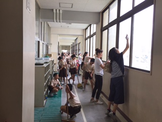 10時からは「親子清掃」を行いました。1年生の保護者を中心に、PTAボランティアの方が約70名参加して、各教室等をきれいにしてくださいました。来週29日(月)からは授業が始まります。9月1日までは給食がないので12:30頃の下校になりますが、みんな元気に登校するよう願っています。