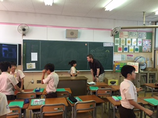 5年生の外国語活動は、2学期はC-NETのBarry先生と担任の先生の授業になります。第一回の今日は、英語のあいさつのしかたをいろいろなゲームを楽しみながら身に付けました。