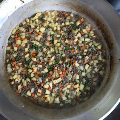写真右は、出来上がった肉じゃがの様子です。