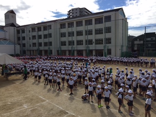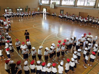 9月27日(火)今日は運動会全体練習の2日目をしました。児童見学席から出て、閉会式の練習、全児童による大玉送りの練習、最後に鶴見音頭の並び方の練習をしました。2時間目は6年生が1年生に「鶴見音頭」を熱心に教えてくれました。