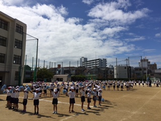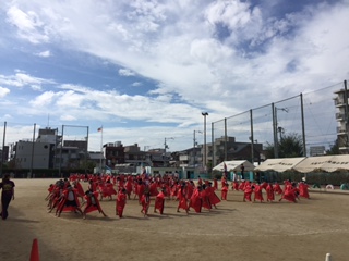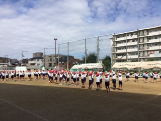 9月28日(水)運動会まであと4日になりました。昨夜は激しい雨が降りましたが、朝から教職員で運動場の水たまりに土を入れて整地をしたので、1時間目から全体練習ができました。