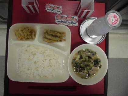 本日の献立は「いわしてんぷら・みそ汁・切り干しだいこんのいため煮・ごはん・牛乳」でした。