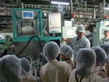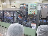 10月14日(金)に工場見学へ行きました。工場内では白いネットを被り、原料を混ぜて温める釜や香料を混ぜる機械、箱詰めをする機械などを見せていただきました。