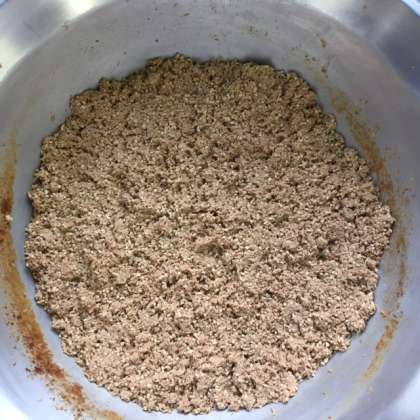 写真右は、出来上がった「ツナ大豆そぼろ」です。