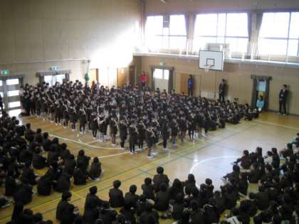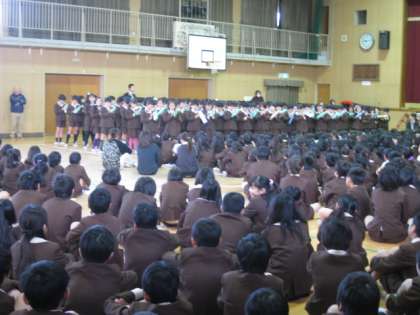 続けて2年生と4年生が2学期に学習したことや音楽を元気に発表し、生活指導と保健の先生からは冬休みのくらしについてのお話がありました。最後にみんなで校歌を歌い、6年生の代表が手話をつけてくれました。