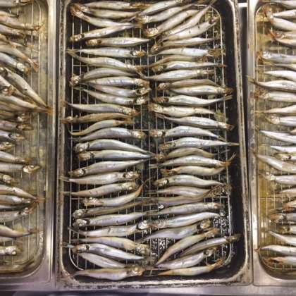 焼きししゃもは、料理酒で下味をつけたししゃもを焼き物機で蒸し焼きにした、焼き物献立でした。